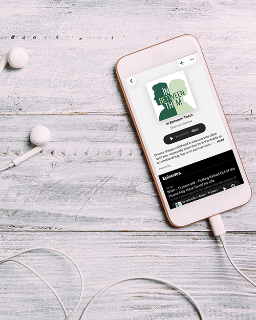 In Between Them is a weekly podcast featuring adults reflecting on their parents’ divorce—what they noticed as children, what they needed at the time, and what stayed with them into adulthood.